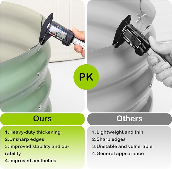 - ๐ณ Unmatched Stability: Crafted with 0.5mm thick overlapping galvanized panels, reaching up to 1.8mm at the seams, our raised garden bed provides excellent strength and stability. The integrated screw fastening edge and unique oval form ensure it remains solid and secure, even when fully planted.