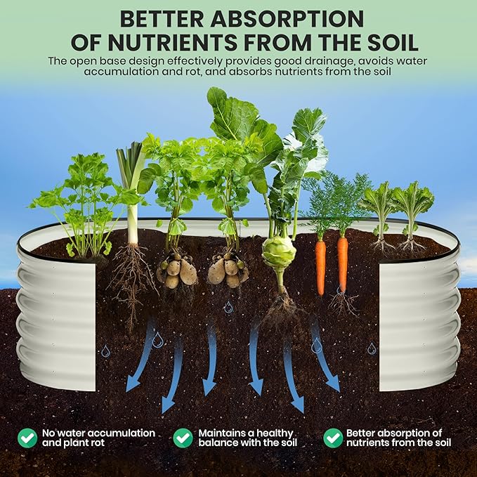 - ๐ณ Unmatched Stability: Crafted with 0.5mm thick overlapping galvanized panels, reaching up to 1.8mm at the seams, our raised garden bed provides excellent strength and stability. The integrated screw fastening edge and unique oval form ensure it remains solid and secure, even when fully planted.