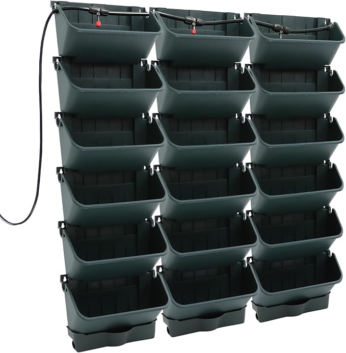 18 Pots Self-Watering Wall-Mounted Planter, 39.4”L x 39.4”H Vertical Wall Planter Self Watering Stackable Planters Vertical Garden Wall Garden Planter Outdoor Indoor for Herbs Flowers Strawberries
