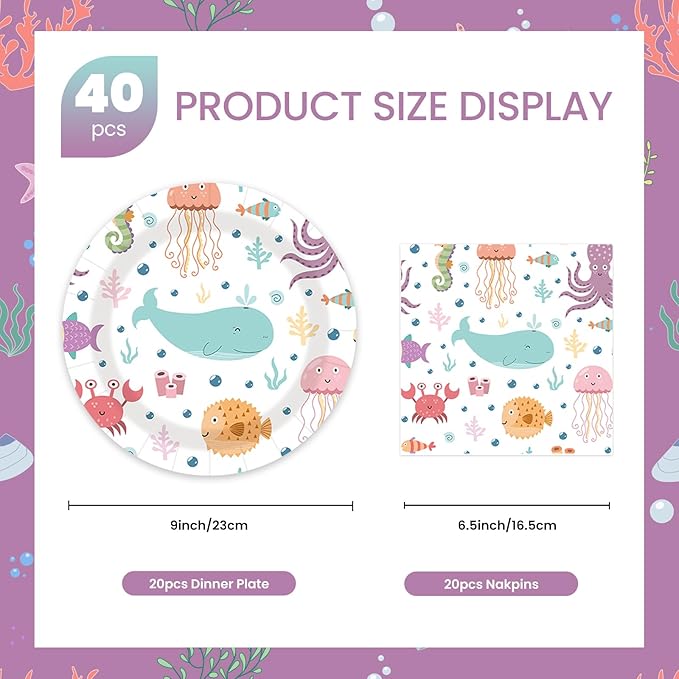 - Vibrant Ocean-Themed Party Essentials:20 premium 9-inch paper plates + 20 matching napkins featuring Dolphins, various marine fish perfect for summer birthday plates, beach parties, or poolside celebrations.