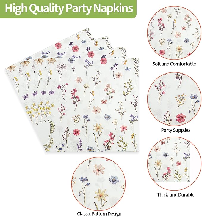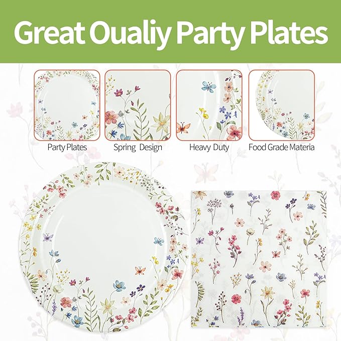 - Durable and Reliable:All our wildflower themed plates and napkins are made of quality paper, not easy to tear and break. These wildflower theme party kit are a perfect complement to your wildflower themed birthday party decorations.