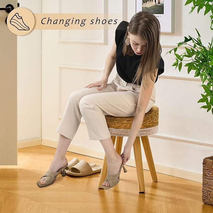 - [Handwoven] Each stool is handwoven by skilled artisans, ensuring unique, high-quality craftsmanship that enhances the beauty of any space.