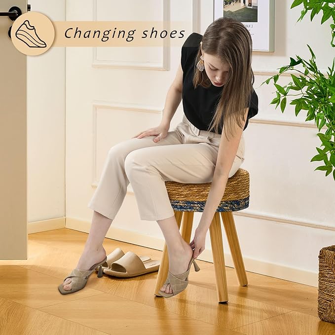 - [Handwoven] Each stool is handwoven by skilled artisans, ensuring unique, high-quality craftsmanship that enhances the beauty of any space.