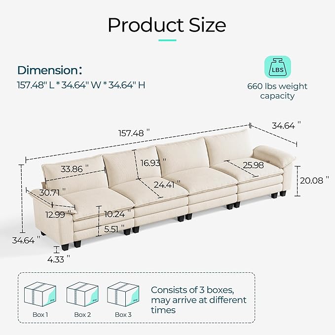 - Product Dimensions : 60.6"D x 157.4"W x 34.6"H