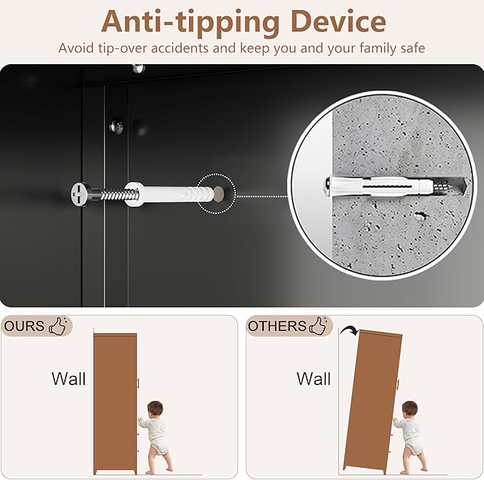 - [PRACTICAL DESIGN] Adjustable shelves allow you to customize storage space. Anti-tipping device will keep you and your family safe. The leveling foot keeps it standing smoothly