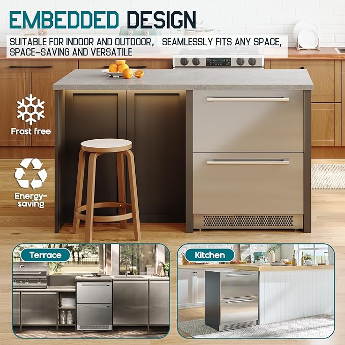 - Embedded Design: Thanks to its compact embedded design, this beer fridge seamlessly integrates into both indoor and outdoor environments, saving space while offering versatile storage solutions.