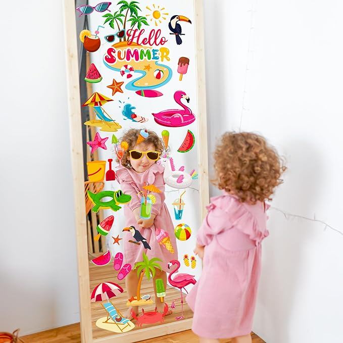 - Wide Occasions: These summer decorations can be applied to most smooth surfaces, including wooden furniture, floors, tiles, mirrors, glass, windows, showcases, and store or restaurant windows.