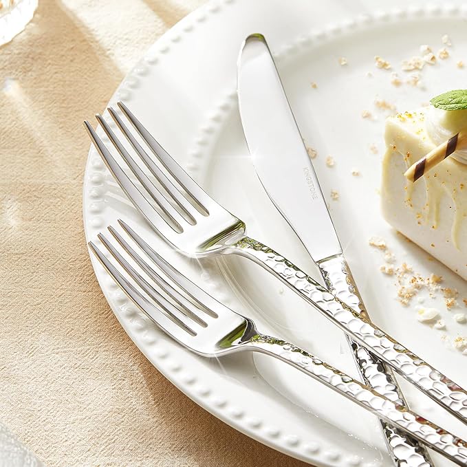 KINGSTONE 60 Piece Hammered Silverware Set, 18/10 Stainless Steel Flatware Set for 12, Cutlery Set for Home, Party, Wedding, Mirror Polished Dishwasher Safe
