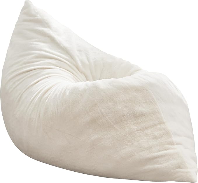 Hobestluk 3 in 1 Bean Bag Chair Giant Bean Bag Chairs for Adults with Plush Faux Fur Cover Convertible Bean Bag Floor Cushion with Machine Washable Cover for Living Room (Plush White)
