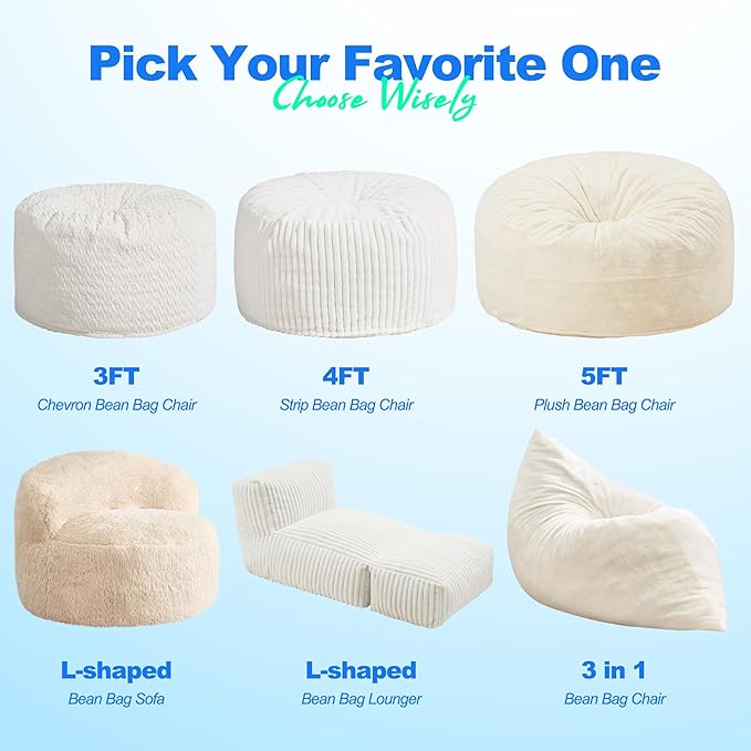 - Easy to Install: It is compressed into a small package and please leave it for 2 days to recover from opening the package, put the cover on and shaking it and fluffing it occasionally, then large bean bag will take in air and expanded beautifully. Oversized bean bag chairs for adluts also comes in various colors, allowing for personal customization to suit your decor.
