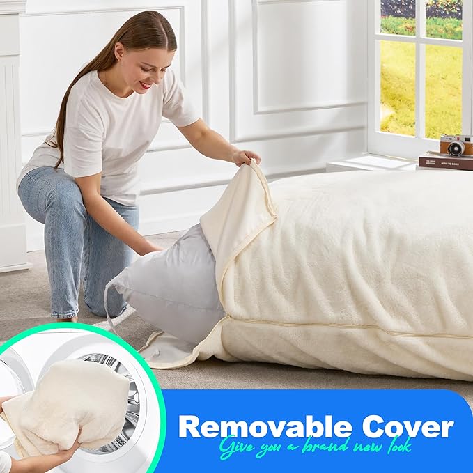 - Removeable Cover: The plush faux fur cover of our bean bag chair for adults is durable and easy to clean, which is great for a household with pets. Covers can come off so you can just put it into the washing machine to keep fresh. It can withstand regular use without showing significant wear and tear. Additionally, the convenience of a removable and washable cover adds to its appeal, making bean bag couch an excellent choice for combining style, comfort, and practicality in any living space.
