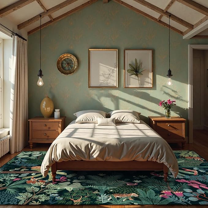 LIVEBOX Washable Jungle Dark Green Rugs 9x12 for Living Room, Stain Resistant Soft Kids Area Rugs for Bedroom, Non-Skid Modern Dining Room Rug Floor Carpet for Playroom Kids Nursery