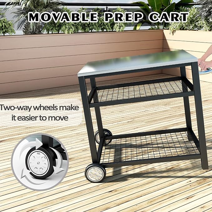 - 【Multifunction】The grill cart can be used indoors and outdoors. A dining cart table, working table cart, food prep table flattop.