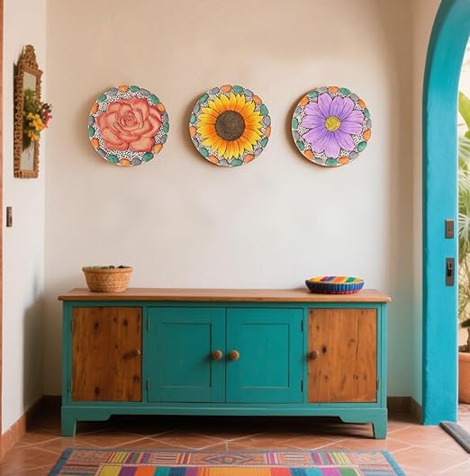 - DESIGN FEATURES: Vibrant sunflower centerpiece surrounded by a beautiful border of colorful pebbles in orange, green, and silver tones.