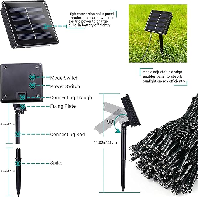 - Widely Used Solar Christmas Tree Lights: With a total length of 72FT (including a 6.5FT lead cable), these lights are ideal for decorating Christmas trees, gardens, patios, lawns, and more, perfect for holidays, parties, and celebrations