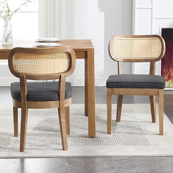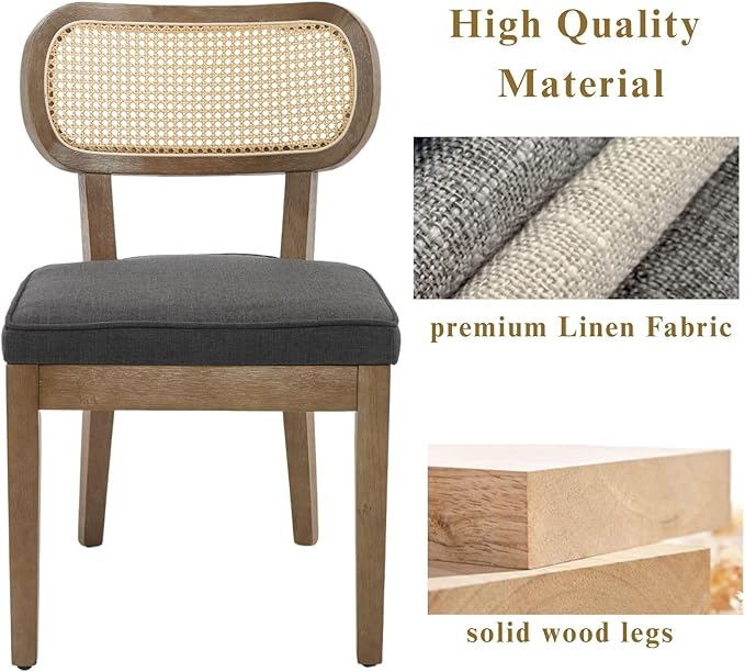 - Elegant & Versatile Style: Combining a sleek solid wood frame, linen fabric, and woven rattan, this chair adds a touch of modern rustic charm to any space. This armless kitchen chairs can be used in various settings, including kitchen room,coffee room, dining room, living room,bedroom