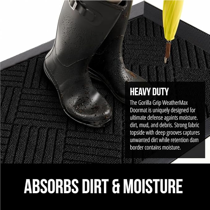 • THE ORIGINAL WEATHERMAX ALL SEASON DOORMAT: Gorilla Grip's Original WeatherMax doormat is built tough with a heavy duty, yet soft and flexible construction; deep grooves, beveled rubber border and retention dam help capture dirt, debris and moisture