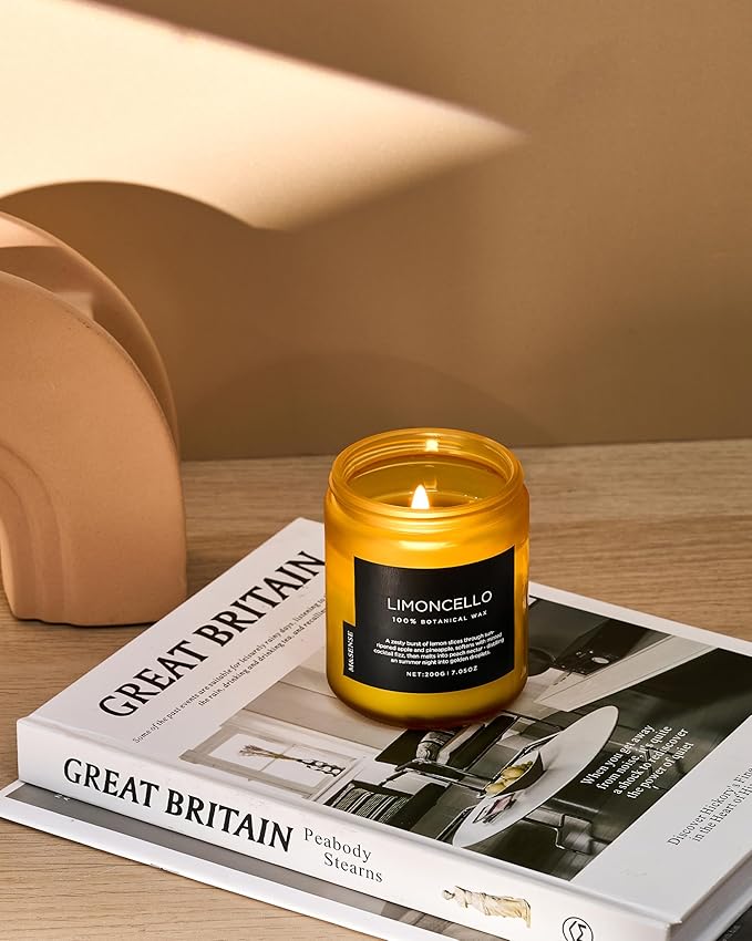 M&SENSE Limocello Summer Scented Candle, 7.05oz 50 Hours Long Lasting Burn Non Toxic Natural Soy Wax Lemon Highly Scented for Home Decor, 2 Wick Relaxing Candle Gifts for Yoga Spa Meditation