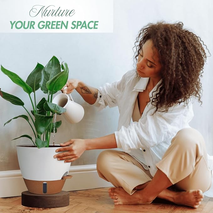 - 【Smart Water Management Self Watering Pots】Say goodbye to overwatering! Each planter features a removable, leak-proof base tray with a CLEAR WATER-LEVEL WINDOW and graduated milliliter markers. Monitor moisture levels at a glance and adjust water intake effortlessly—suitable for beginners and forgetful plant parents. The built-in self-watering wick ensures consistent soil hydration for up to 10 days, reducing watering frequency. Travel no worry – your plants stay hydrated while you're away.