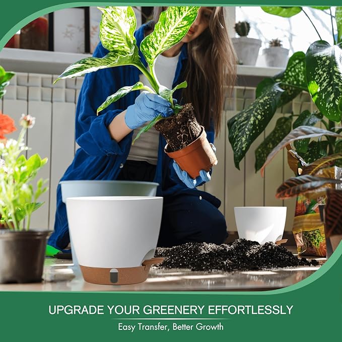 - 【Smart Water Management Self Watering Pots】Say goodbye to overwatering! Each planter features a removable, leak-proof base tray with a CLEAR WATER-LEVEL WINDOW and graduated milliliter markers. Monitor moisture levels at a glance and adjust water intake effortlessly—suitable for beginners and forgetful plant parents. The built-in self-watering wick ensures consistent soil hydration for up to 10 days, reducing watering frequency.