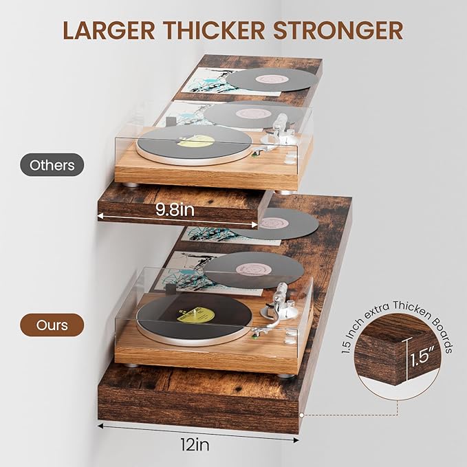 - Easy Installation: Comes with all the mounting hardware and detailed instructions, easy to install within 10 minutes. Thicken & strong metal brackets provide excellent support, keeping the floating shelves sturdy against the wall without sagging. The pre-drilled holes allow for secure attachment of boards to brackets, ensuring a reliable display.