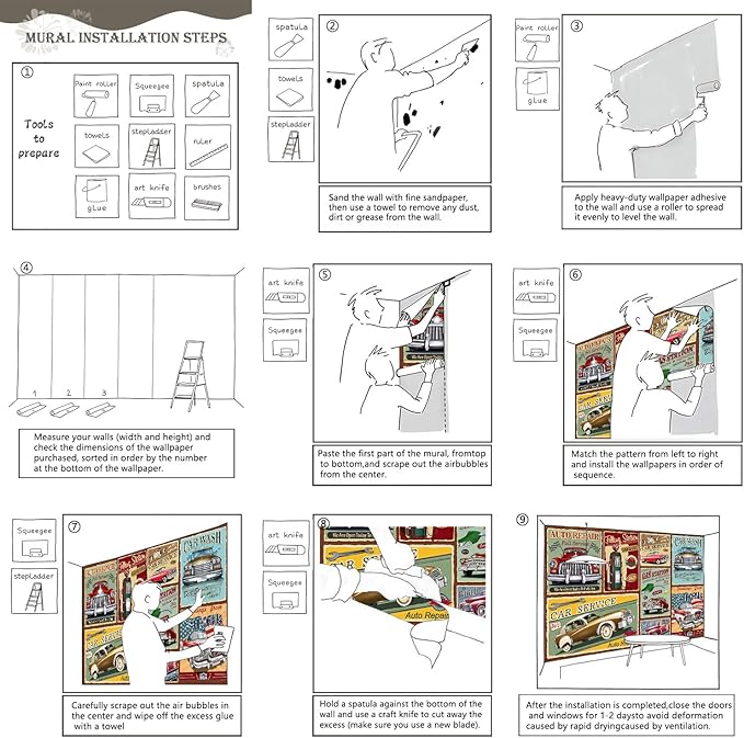 - Tips: Mural can not be peeled and pasted, you need to buy a heavy duty wallpaper glue