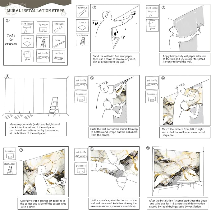 - Tips: Mural can not be peeled and pasted, you need to buy a heavy duty wallpaper glue