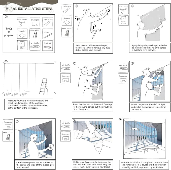 - Tips: Mural can not be peeled and pasted, you need to buy a heavy duty wallpaper glue