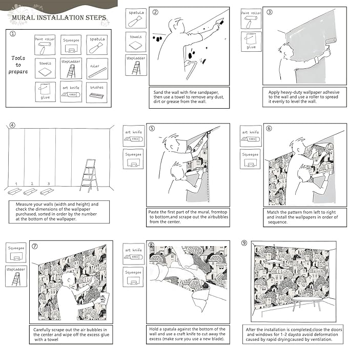 - Tips: Mural can not be peeled and pasted, you need to buy a heavy duty wallpaper glue