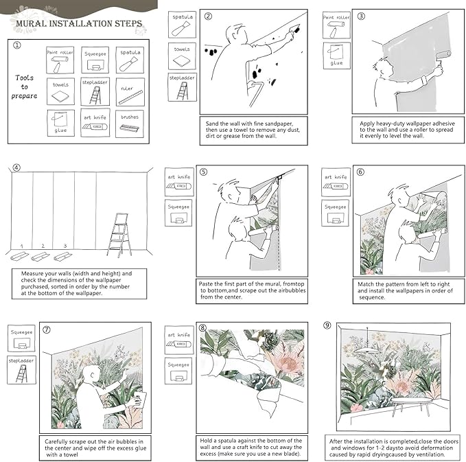 - Tips: Mural can not be peeled and pasted, you need to buy a heavy duty wallpaper glue