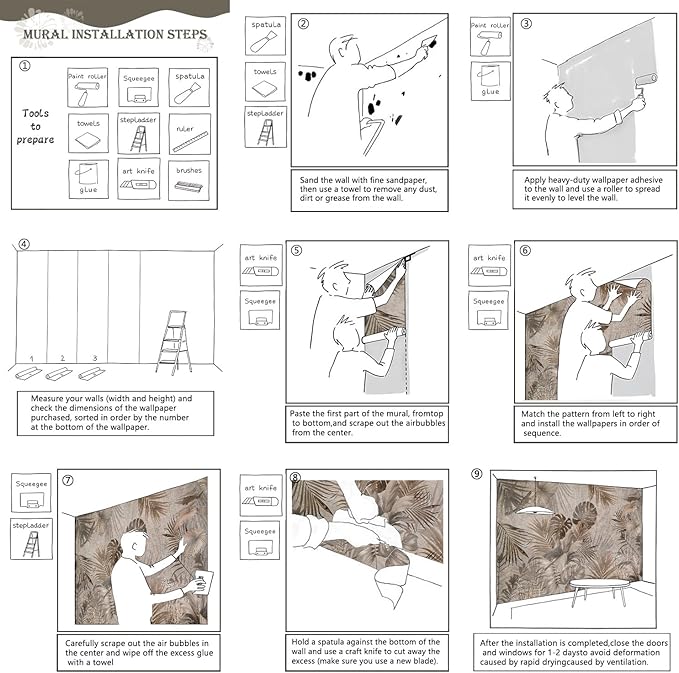 - Tips: Mural can not be peeled and pasted, you need to buy a heavy duty wallpaper glue