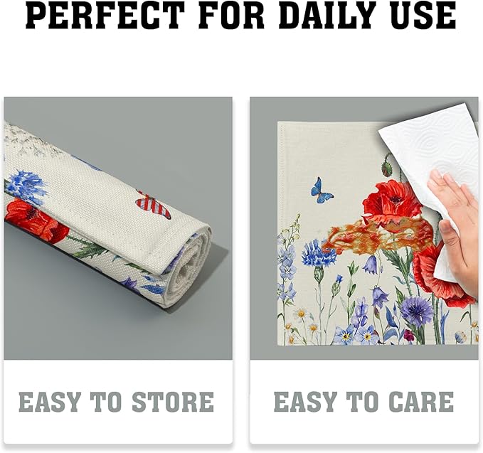 • Easy Care: Memorial day placemats can be washed by hand or machine, or wiped clean with a damp cloth. If there are stains on placemats, give them a quick wash and you can use them again, effectively extending the life of your dining table