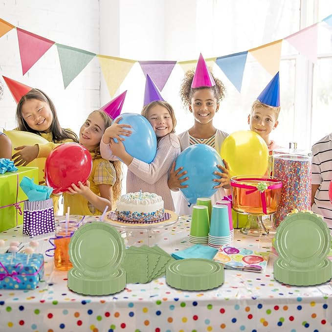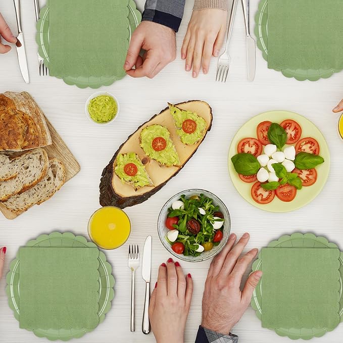 - Complete Set: Enjoy a hassle-free party with our 50 pcs sage green scalloped paper plates party supplies set that includes9 inch 20 pcs dessert plates & 20 pcs napkins.Perfect for any party or everyday use, enough to decorate a fabulous and unique party!