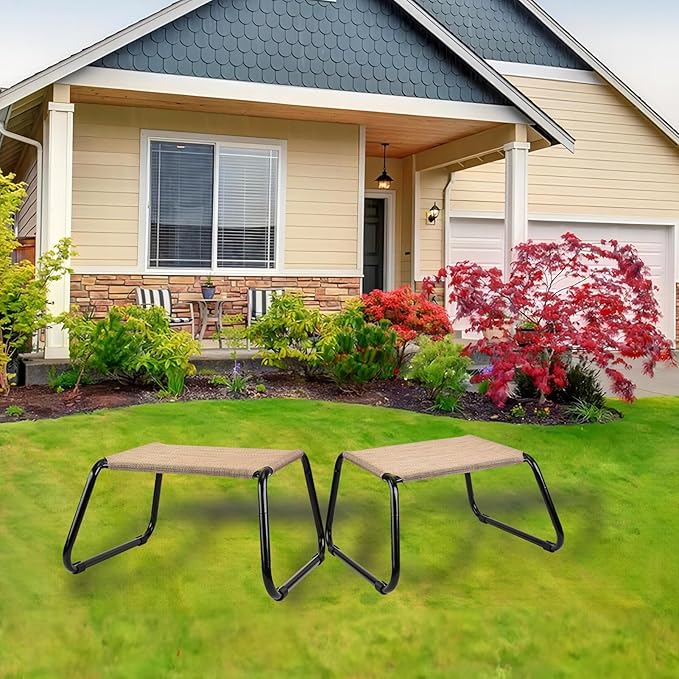Outdoor Footstools for Patio,Backyard Patio Furniture Metal Frame Small Seat All Weather Footrest for Couch Patio Chairs 2 Pieces Beige