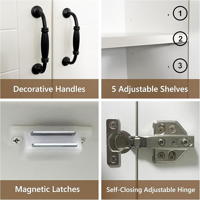 - Multifunctional Cabinet: Our 2 door wooden cabinet features a freestanding design, which you can use for a pantry cabinet, food cabinet, kitchen cabinet, kitchen cupboard, utility cabinet, laundry room cabinet, bathroom cabinet, bedroom wardrobe, bookcase, tool cabinet, file cabinet, appliance cabinet, etc. It will be your good choice for storage and organization