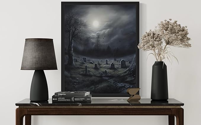 Gothic Graveyard Poster Art Print, Halloween Scary Vintage Wall Art Academia Spooky Painting Decoration for Horror Prints, Posters Bedroom Decor 89 (Gothic Graveyard, 16 x 20 inches, Black Frame)