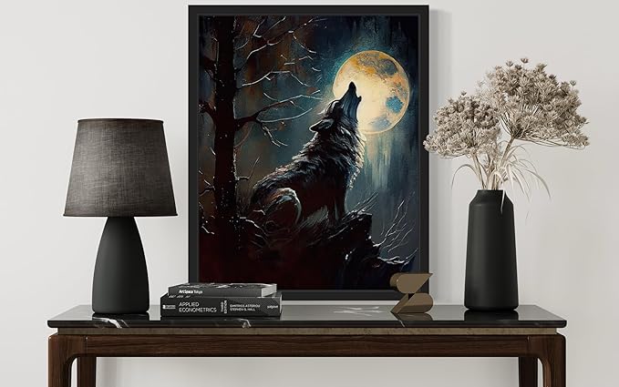 Wolf howling Poster Art Print, Halloween Scary Vintage Wall Art Academia Spooky Painting Decoration for Horror Prints, Gothic Posters Bedroom Decor 89 (Wolf howling, 8 x 10 inches, Black Frame)