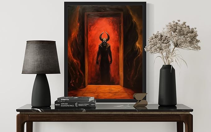 Satan and Hell Poster Art Print, Halloween Scary Vintage Wall Art Academia Spooky Painting Decoration for Horror Prints, Gothic Posters Bedroom Decor 89 (Satan and Hell, 11 x 14 inches, Black Frame)