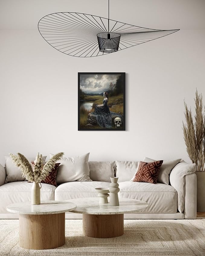 Widow Ghost Poster Art Print, Halloween Scary Vintage Wall Art Academia Spooky Painting Decoration for Horror Prints, Gothic Posters Bedroom Decor 89 (Widow Ghost, 16 x 20 inches, Black Frame)