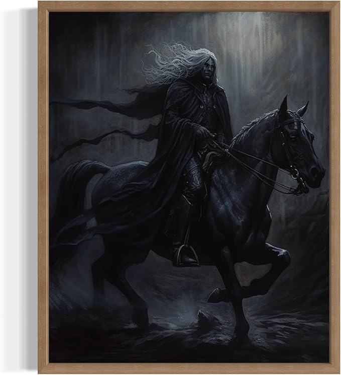 Black Dark Knight Poster Art Print, Halloween Scary Vintage Wall Art Academia Spooky Painting Decoration for Horror Prints, Gothic Posters Bedroom Decor 89 (Black Dark Knight, 16 x 20 inches, Wood Frame)