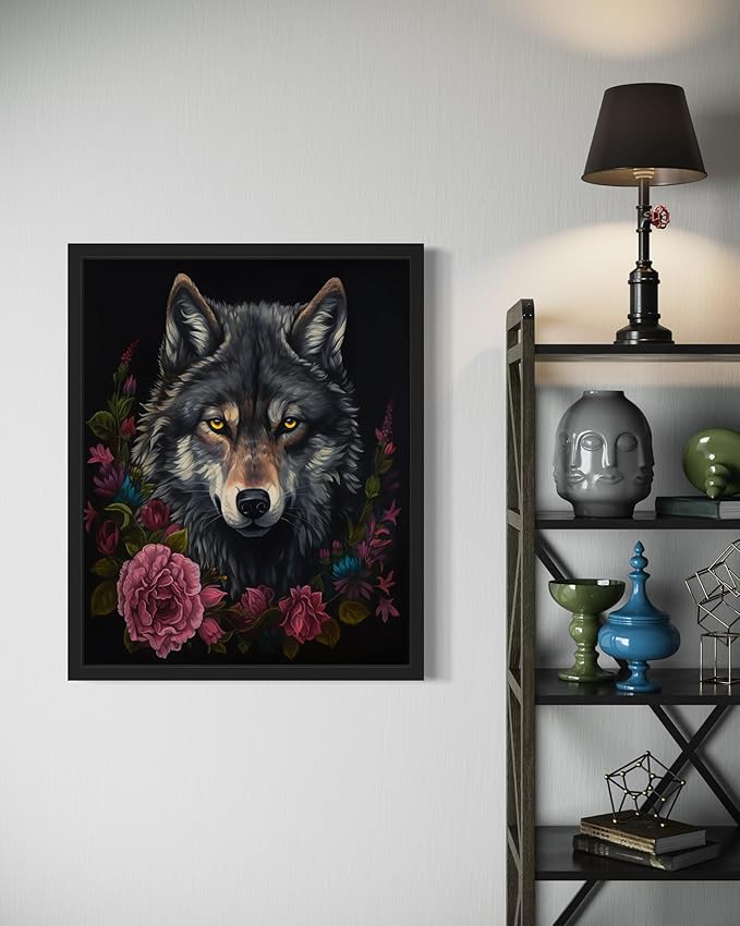 Vintage Wolf Poster Art Print, Halloween Scary Wall Art Academia Spooky Painting Decoration for Horror Prints, Gothic Posters Bedroom Decor 89 (Vintage Wolf, 11 x 14 inches, Black Frame)