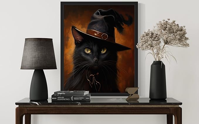 Witch Cat Poster Art Print, Halloween Scary Vintage Wall Art Academia Spooky Painting Decoration for Horror Prints, Gothic Posters Bedroom Decor 89 (Witch Cat, 11 x 14 inches, Black Frame)