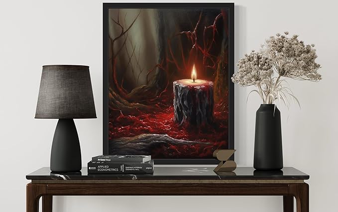 Gothic Candle Poster Art Print, Halloween Scary Vintage Wall Art Academia Spooky Painting Decoration for Horror Prints, Posters Bedroom Decor 89 (Gothic Candle, 16 x 20 inches, Black Frame)