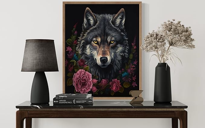 Vintage Wolf Poster Art Print, Halloween Scary Wall Art Academia Spooky Painting Decoration for Horror Prints, Gothic Posters Bedroom Decor 89 (Vintage Wolf, 8 x 10 inches, Wood Frame)
