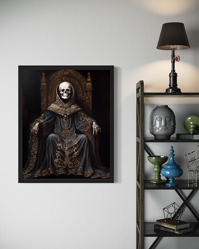 Skull King Poster Art Print, Halloween Scary Vintage Wall Art Academia Spooky Painting Decoration for Horror Prints, Gothic Posters Bedroom Decor 89 (Skull King 1, 8 x 10 inches, Black Frame)