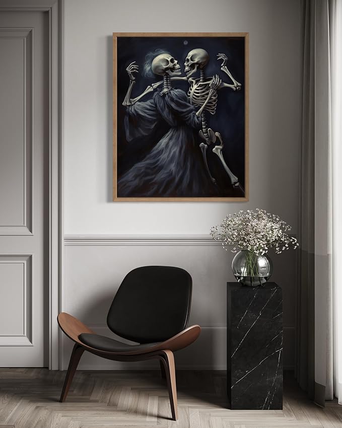 Dancing Skeleton Poster Art Print, Halloween Scary Vintage Wall Art Academia Spooky Painting Decoration for Horror Prints, Gothic Posters Bedroom Decor 89 (Dancing Skeleton, 8 x 10 inches, Wood Frame)
