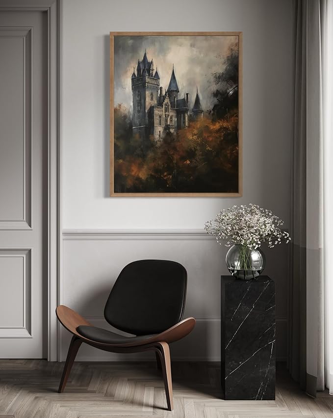 Old Castle Poster Art Print, Halloween Scary Vintage Wall Art Academia Spooky Painting Decoration for Horror Prints, Gothic Posters Bedroom Decor 89 (Old Castle, 8 x 10 inches, Wood Frame)