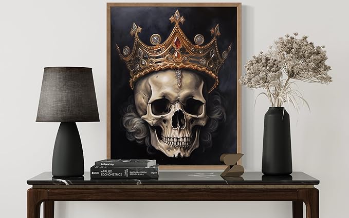 Skull Queen Poster Art Print, Halloween Scary Vintage Wall Art Academia Spooky Painting Decoration for Horror Prints, Gothic Posters Bedroom Decor 89 (Skull Queen, 16 x 20 inches, Wood Frame)
