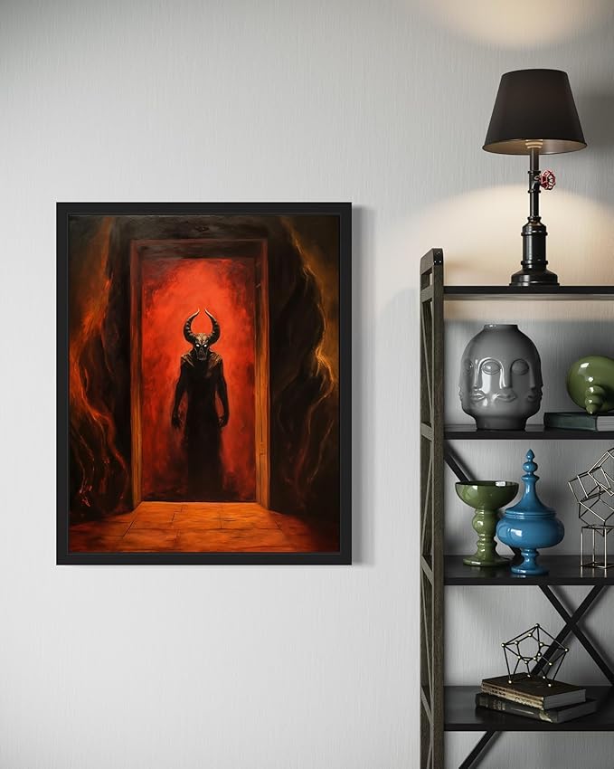 Satan and Hell Poster Art Print, Halloween Scary Vintage Wall Art Academia Spooky Painting Decoration for Horror Prints, Gothic Posters Bedroom Decor 89 (Satan and Hell, 16 x 20 inches, Unframed)