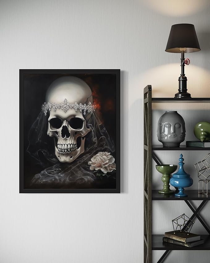 Skull Bride Poster Art Print, Halloween Scary Vintage Wall Art Academia Spooky Painting Decoration for Horror Prints, Gothic Posters Bedroom Decor 89 (Skull Bride, 8 x 10 inches, Black Frame)